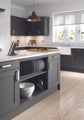 Ascot is another range that redefines the look of shaker kitchens. The 60mm narrow frame and one piece door creates a more contemporary minimalist feel and is constructed from solid 18mm MDF.